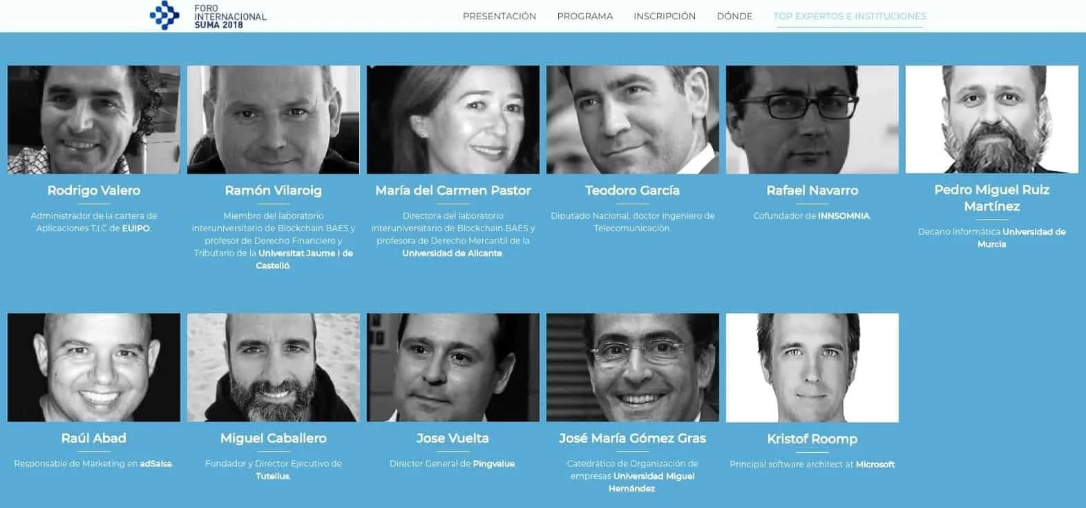 El foro con el título "La Tecnología Blockchain al Servicio de la Sociedad", congregó en Alicante a los mayores expertos internacionales en esta disruptiva tecnología, que tiene múltiples aplicaciones y un enorme potencial para aportar valor a la sociedad. Se pudo seguir en directo por streaming y fue Trending Topic en España, con más de tres millones de impactos en Twitter.